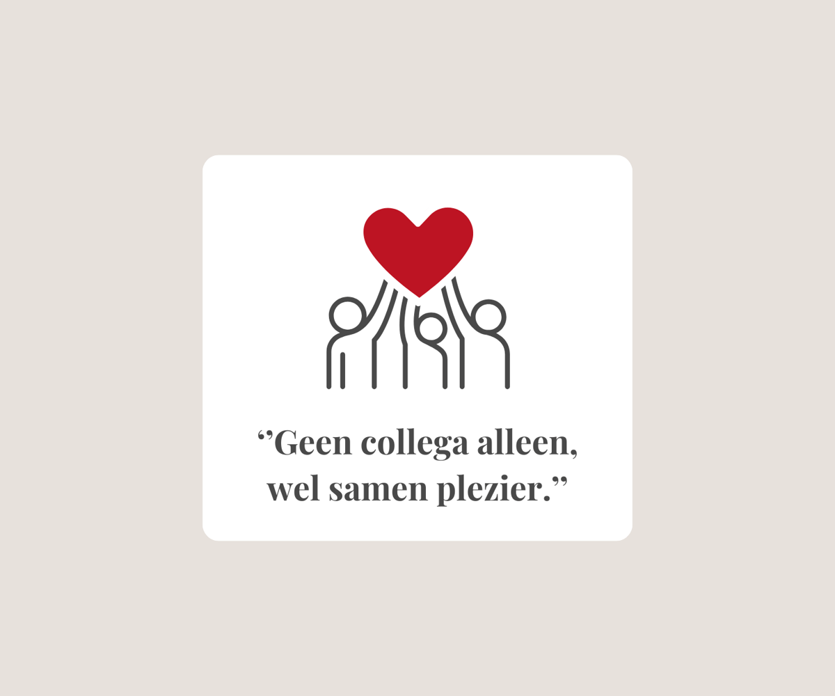 In onze kleinschalige organisatie creëren we elke dag samen een fijne plek om te wonen en te werken. Met zo’n 100 bewoners en 150 betrokken collega’s kennen we elkaar echt. Dat zorgt voor vertrouwen, ruimte voor initiatief en werkplezier. We werken met zo min mogelijk regels, maar met zoveel mogelijk voldoening. En omdat iedereen uniek is, krijg je bij ons alle kansen om een baan te vinden die écht bij jou past.
